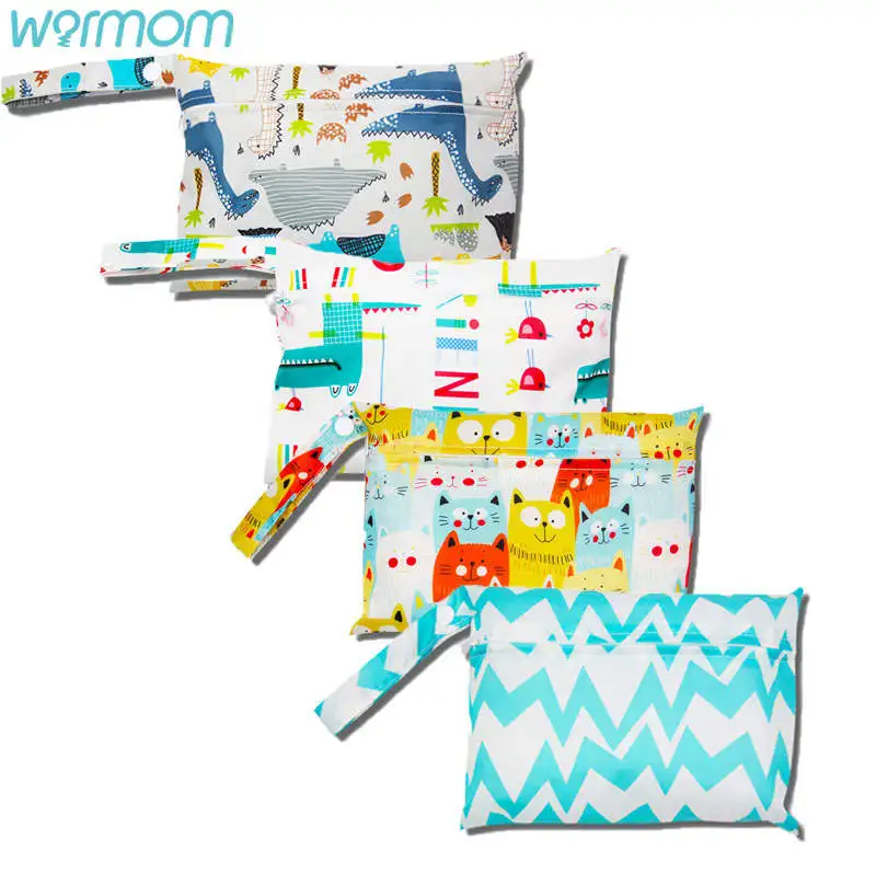 Name: Warmom-Bolsa de pañales impermeable para bebé, bolsa de almacenamiento de pañales, bolso colgante para cochecito de bebé, bolso húmedo seco reutilizable, bolsas de bolsillo con estampado